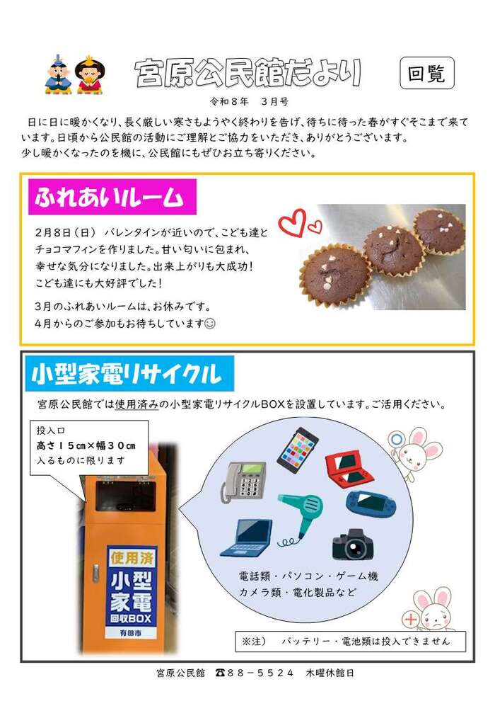 公民館だより3月号 リンク 初島公民館〒649-0306 有田市初島町浜1367-3 港町公民館〒649-0305 有田市港町511 箕島公民館〒649-0304 有田市箕島627-3 宮崎公民館〒649-0316 有田市宮崎町486-2 保田公民館〒649-0311 有田市辻堂533-1 宮原公民館〒649-0434 有田市宮原町新町189-1 糸我公民館〒649-0421 有田市糸我町中番408-2 中央地区公民館〒649-0317 有田市古江見201-1