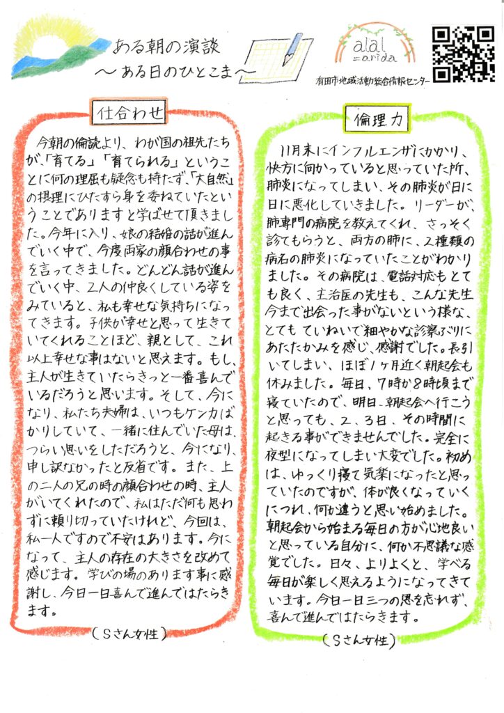 朝起き会 箕島会場だより1月+活動報告